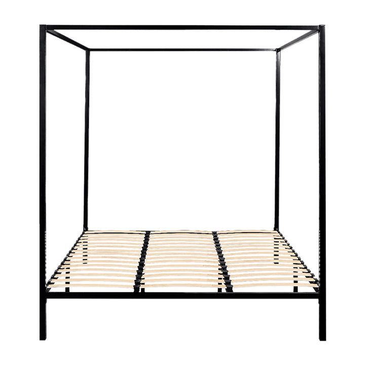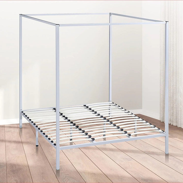 4-Poster Metal Canopy Bed Frame – Modern Sturdy Design with Slatted Base
