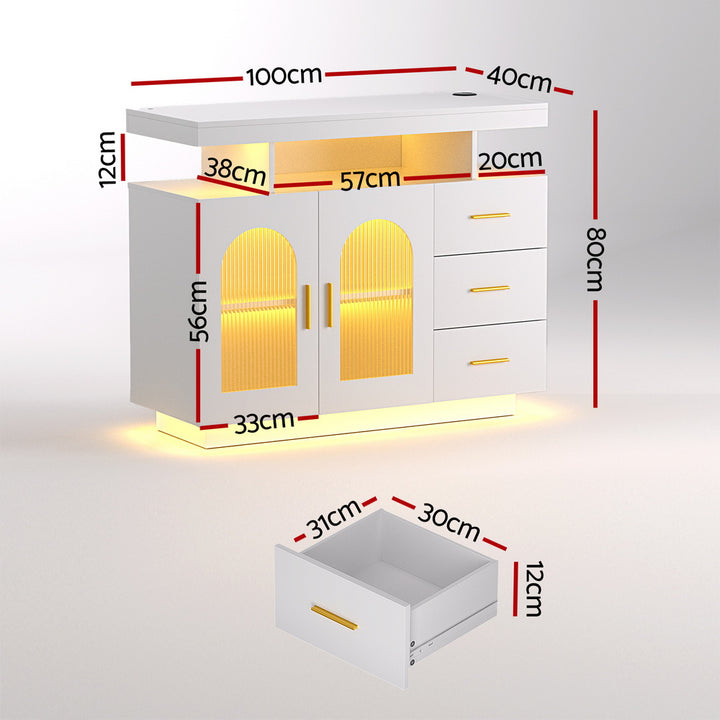 Eden Nest Sideboard Cabinet With LED Clear Doors White