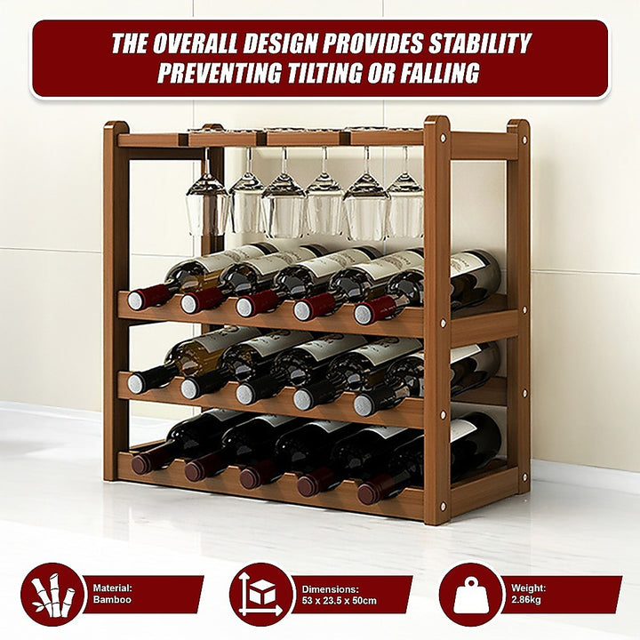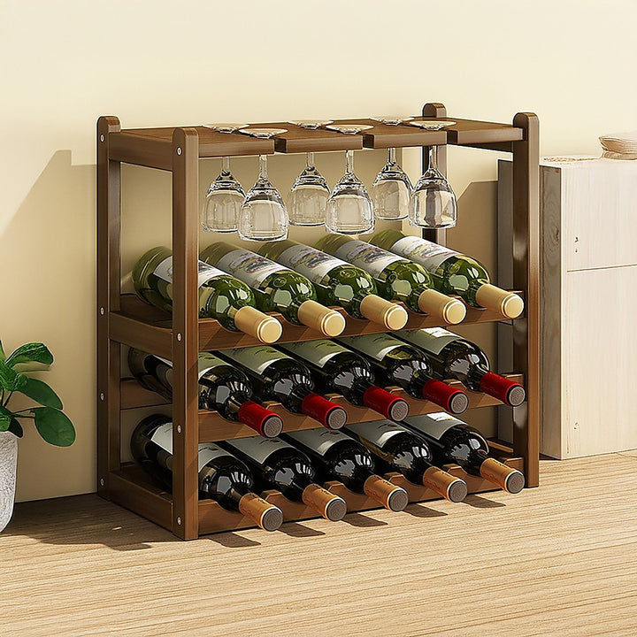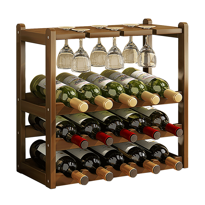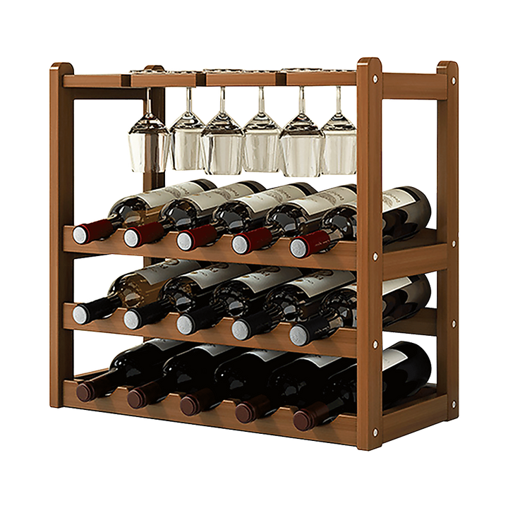 Eden Nest Bamboo Standing Wine Rack 15 Bottles 6 Glasses
