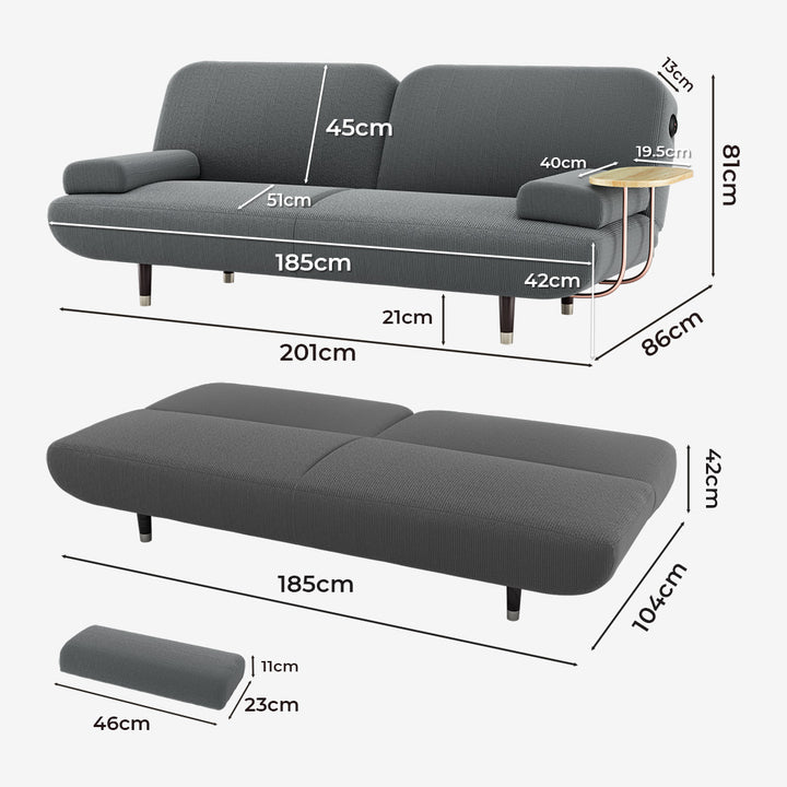 Convertible 3-Seater Sofa Bed with USB Charging & Removable Side Table