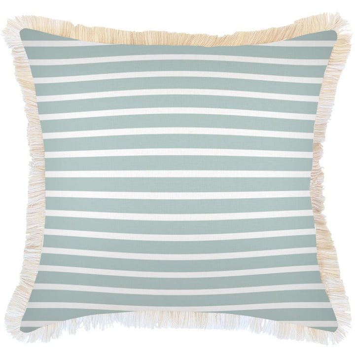 Eden Nest Seafoam Cushion Cover Coastal Fringe Stripe
