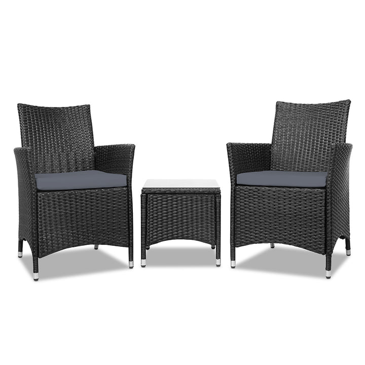 Eden Nest 3Pc Outdoor Wicker Bistro Set Chairs Table Black