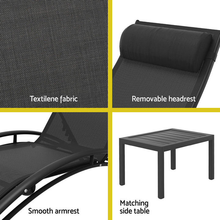 Eden Nest 3PC Sun Lounge Outdoor Lounger Set Steel Frame
