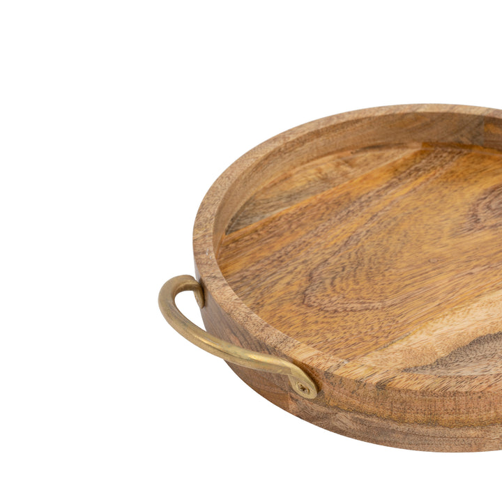 Handcrafted Mango Wood Round Tray With Handles 34cm