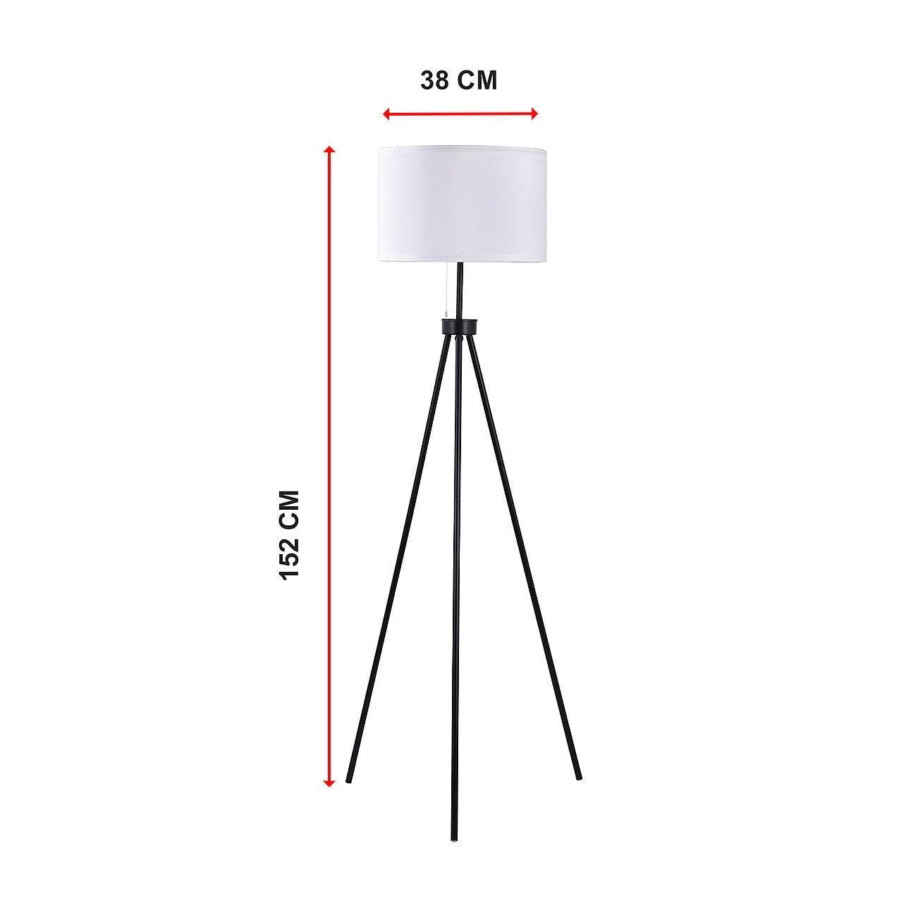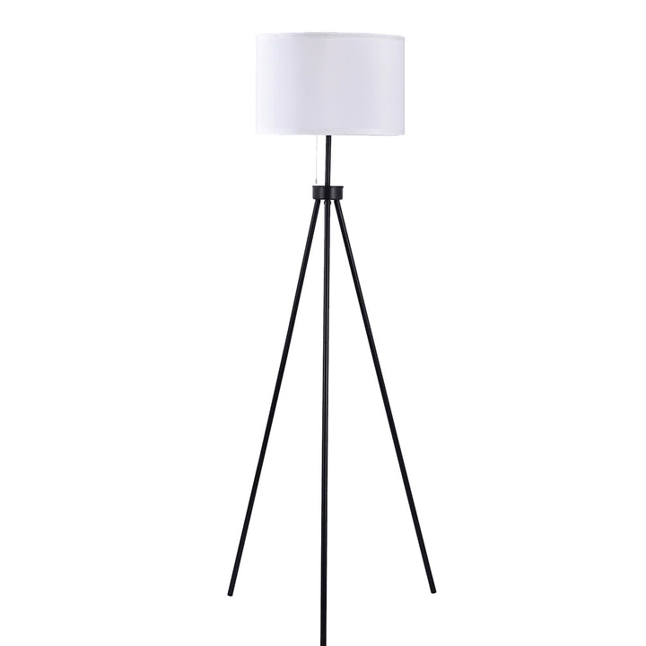 Mid-Century Tripod Floor Lamp – Black Metal Frame with Ivory Shade