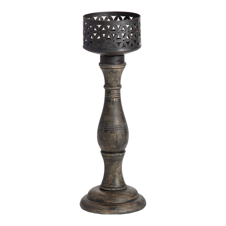 Ornate Baroque Pillar Candle Holder 35 cm Iron Mango Wood