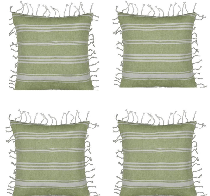 Eden Nest Pack Of 4 Green White Striped Cushion Covers