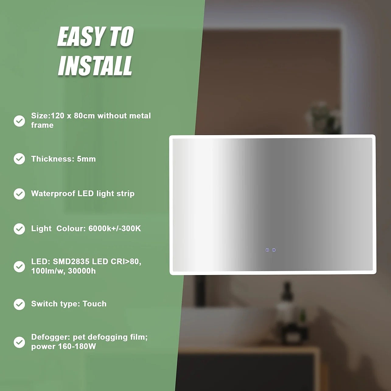Rectangular LED Bathroom Mirror – Anti-Fog & Touch-Control