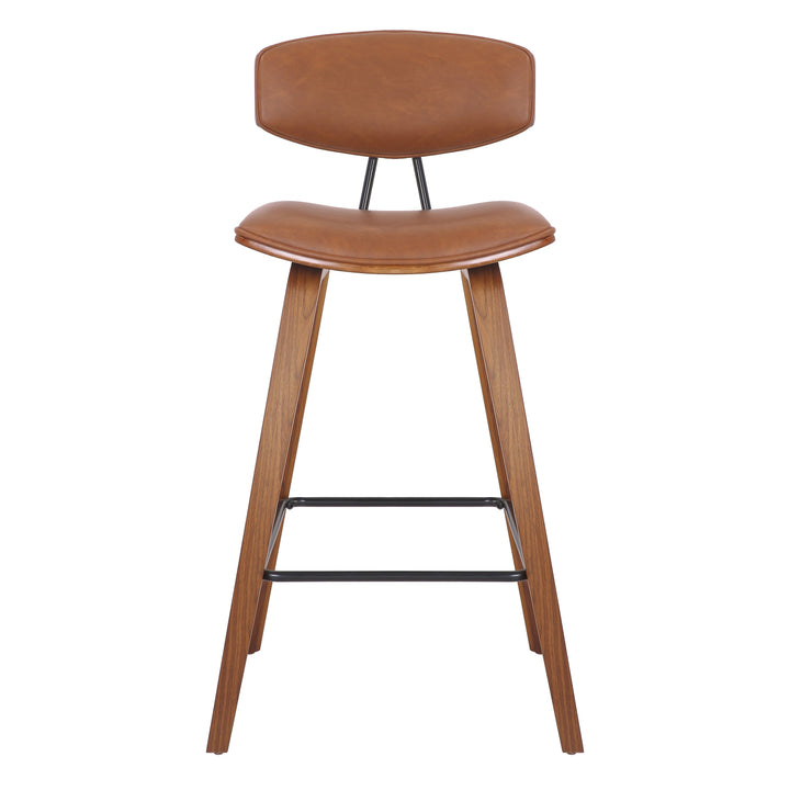 Eden Nest Retro Kitchen Bench Height Chair Walnut Finish with Brown PU Leather Cushion