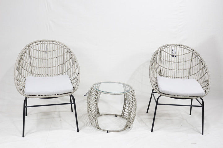 Eden Nest 3 Piece Outdoor PE Wicker Set With Glass Table