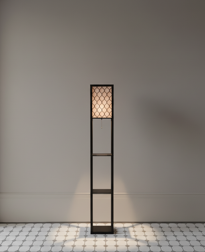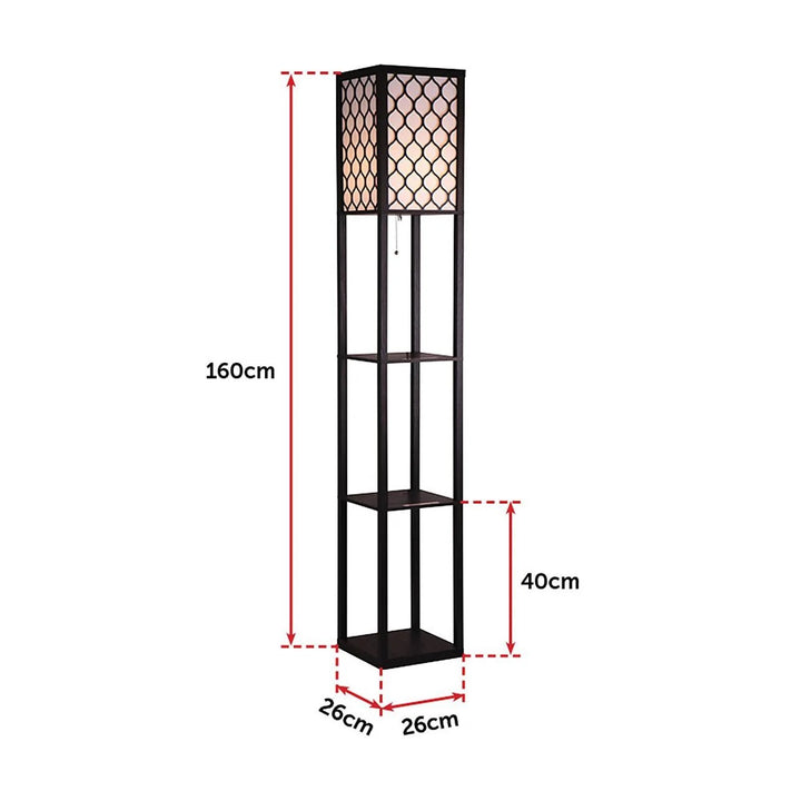 Shelf Floor Lamp with Shade – 1.6m Wooden Frame & 3-Tier Storage